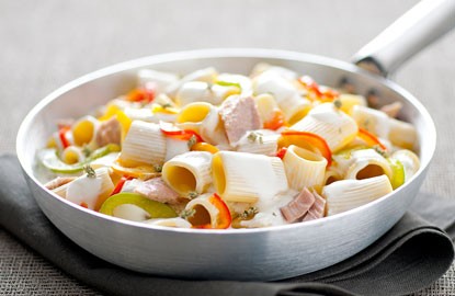 Affettare finemente la cipolla e farla cuocere un po con un po di acqua,aggiungere i peperoni e farli insaporire per 5/6 minuti. Aggiungere il tonno e salare. Cuocete la pasta e rovesciatela nel condimento. Unite il Philadelphia e mescolate il tutto. In fine aggiungete un mestolo di acqua di cottura :)